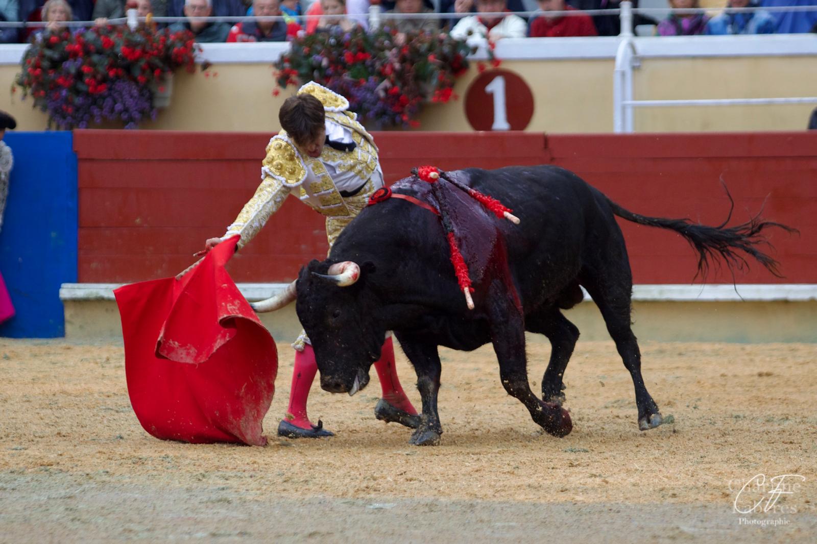 Ferrera ouvrit la tarde face à un toro corniabierto et mobile. Spectaculaire mais sans grand fond, son labeur séduisit le public avant que deux pinchazos et une entière ne limitent son succès à une oreille. Grièvement secoué au moment de porter l’épée, il gagna l’infirmerie, d’où il ressortit pour affronter le quatrième. Ce chorreado, aussi brave que pegajoso, l’obligea à se surpasser. Après un début lointain, il se redressa pour lier des séries profondes à droite, perdant toutefois les trophées avec l’épée puis repartant vers l’infirmerie, ovationné.