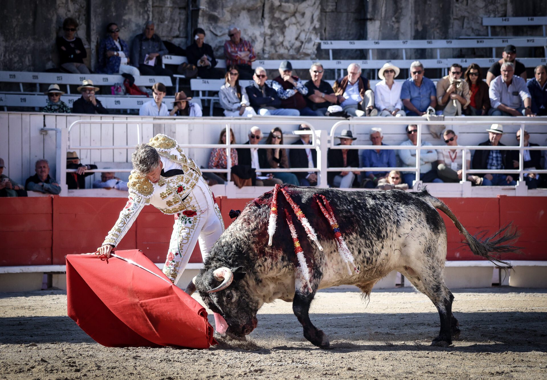 C’est ensuite face au sixième que le Nîmois franchit un cap. Plus sûr de lui, plus à son aise dès les premiers capotazos, il se montra également brillant aux banderilles. Mais c’est muleta en main qu’il se révéla pleinement. Sur la corne gauche, notamment, il signa trois séries de naturelles d’une grande profondeur, alliant temple et intensité. En parfaite harmonie avec un adversaire qui répondait avec franchise, El Rafi livra ses meilleurs moments, dans une connexion rare et sincère. Une nouvelle estocade en place, d’effet rapide, lui permit de couper deux oreilles.