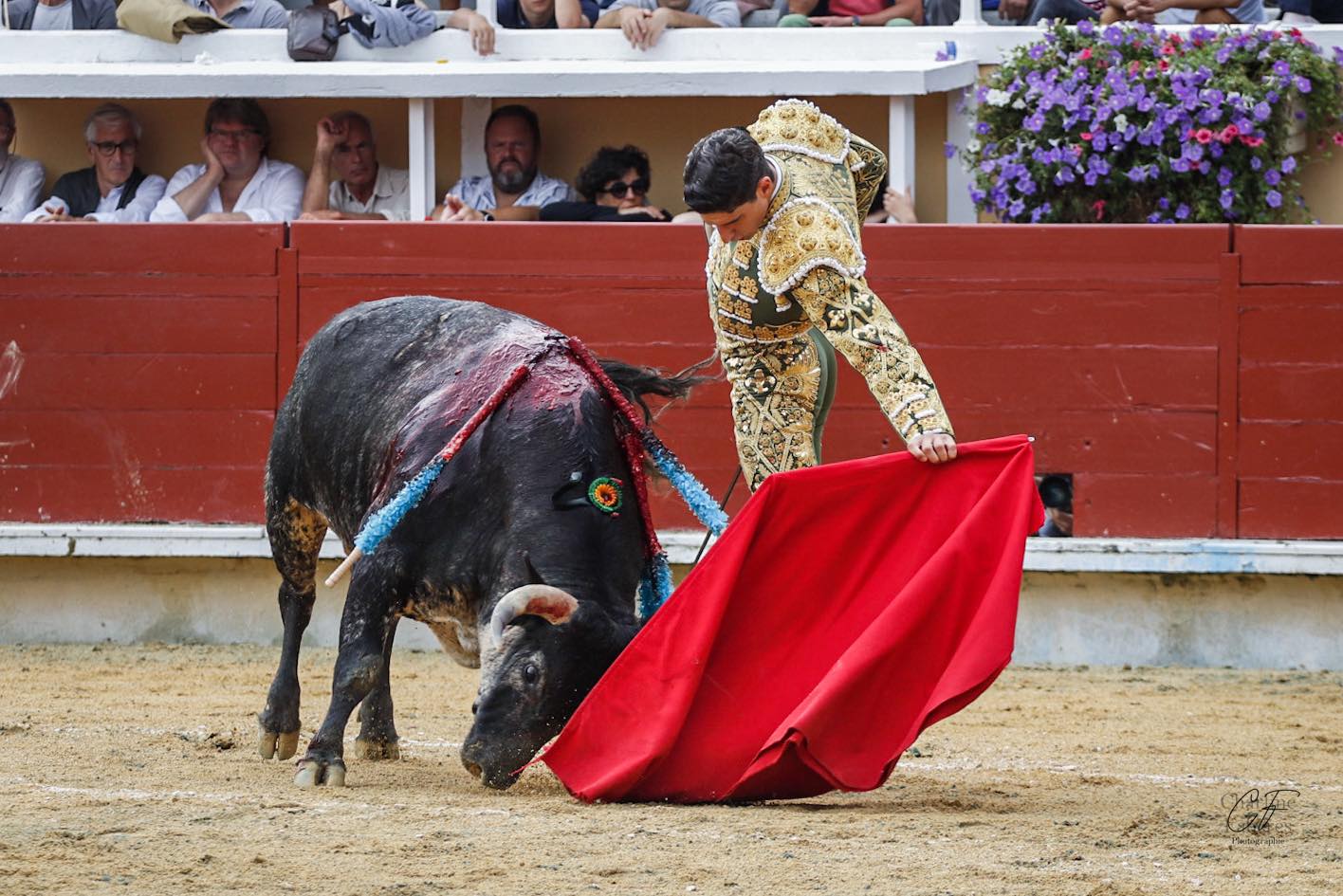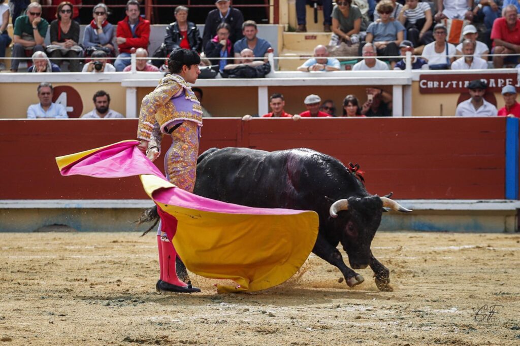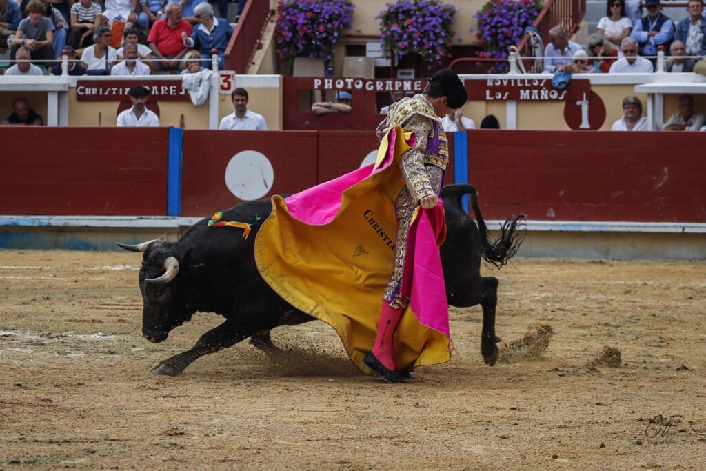 Une maladresse avec les armes qui couta l’obtention d’un trophée à Christian Parejo auteur d’une faena bien tracée devant le troisième exemplaire de la matinée, doté d’une bonne dose de classe notamment dans ses charges droitières. Une oreille est finalement tombée dans l’escarcelle du novillero de Chiclana après une faena, bien construire, l’espagnol exposa tout son caractère et son entrega devant un novillo des plus exigeants.