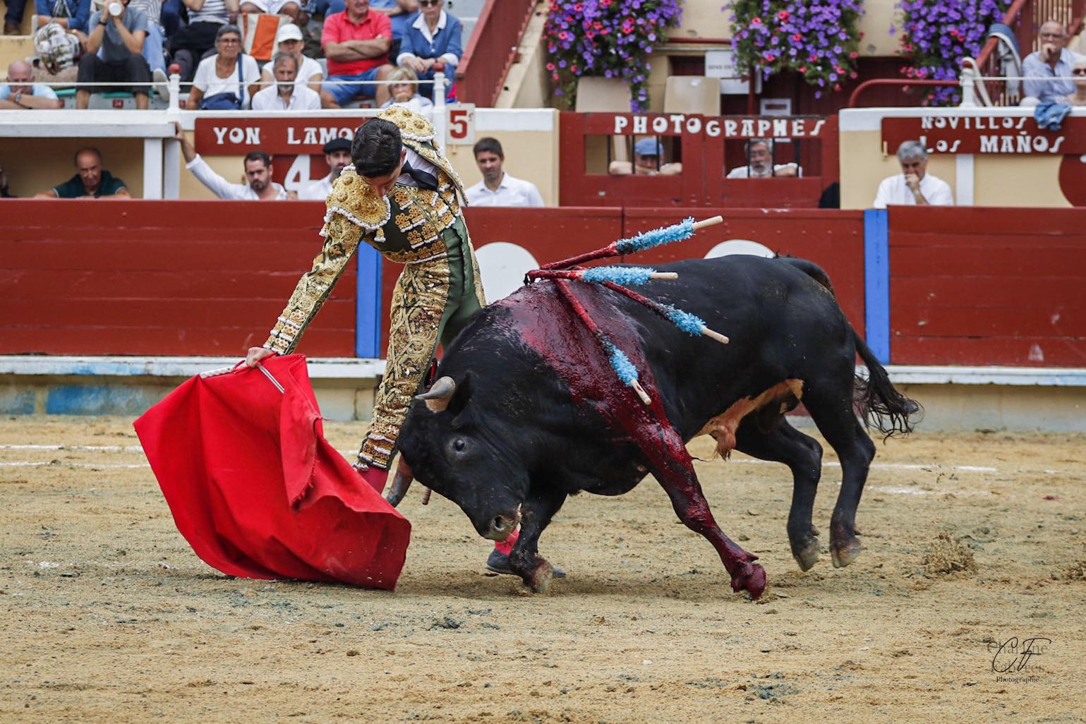 Yon Lamothe revenait sur les bords de la Nive un an après y avoir accroché un succès d’importance, mais cette fois le montois quitte bredouille l’enceinte bayonnaise pour s’être montré particulièrement maladroit au moment de conclure, notamment sa seconde partition devant un grand novillo de Los Maños primé d’un vuelta posthume.