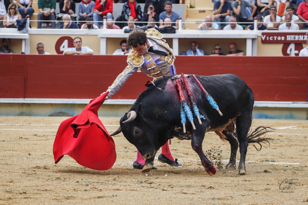 Tout récemment pris en main par le matador de toros Matias Tejela, Victor Hernandez a coupé le premier pavillon de la matinée devant son premier opposant après une faena empreinte de détermination et devant un animal mobile et maniable, fort bien estoqué, ce qui libera la première récompense. Le novillero madrilène a ensuite gâché avec l’estoc tout le crédit d’une faena de valeur au-devant d’un utrero animé d’une charge franche, ce dernier ovationné à l’arrastre.