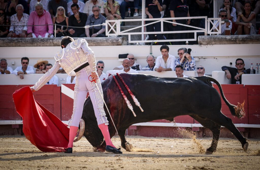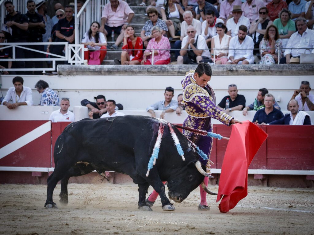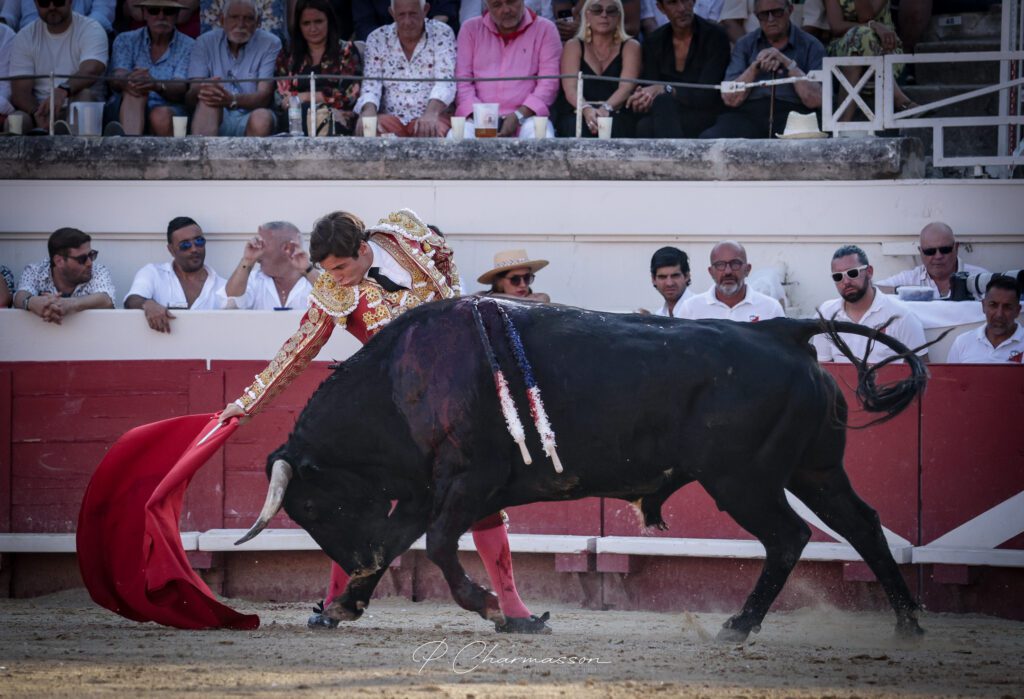 Son second adversaire, bien capté à la cape l’obligea à s’imposer par le terrain et le placement. Un sujet sur lequel le biterrois est inatteignable. Impressionnant de décision et de précision pour maintenir le fauve, handicapé par une vuelta de campana et un moral limité. A gauche, le biterrois déssina d’admirables naturelles, rajoutant au plat toute sa saveur. Pinchazo, ¾ de lame et oreille. Auparavant, Sebastien Castella eu la délicatesse d’offrir son combat au maestro Richard Millian, véritable idole du public local dans les années 90 et accueilli par une chaleureuse ovation.