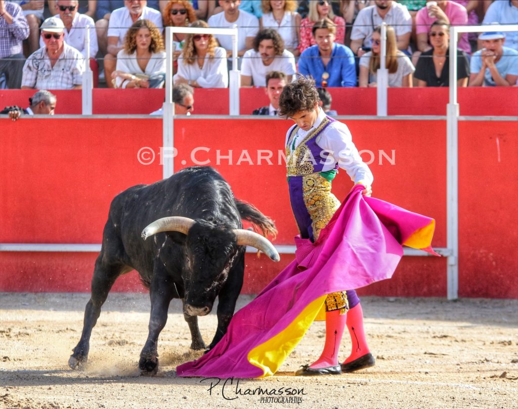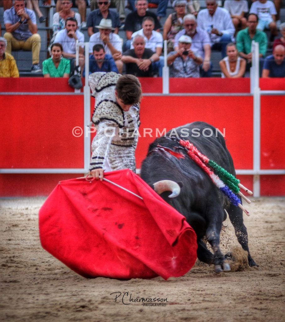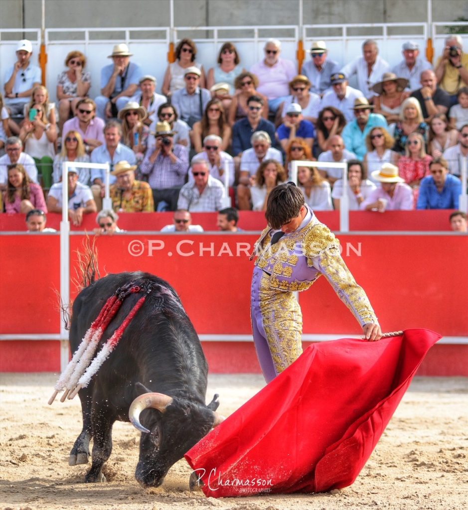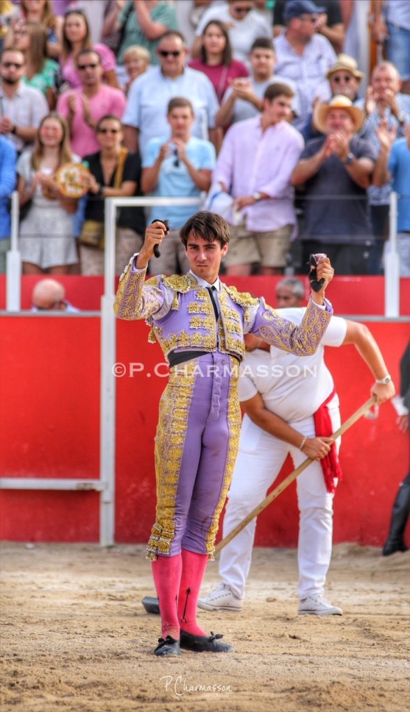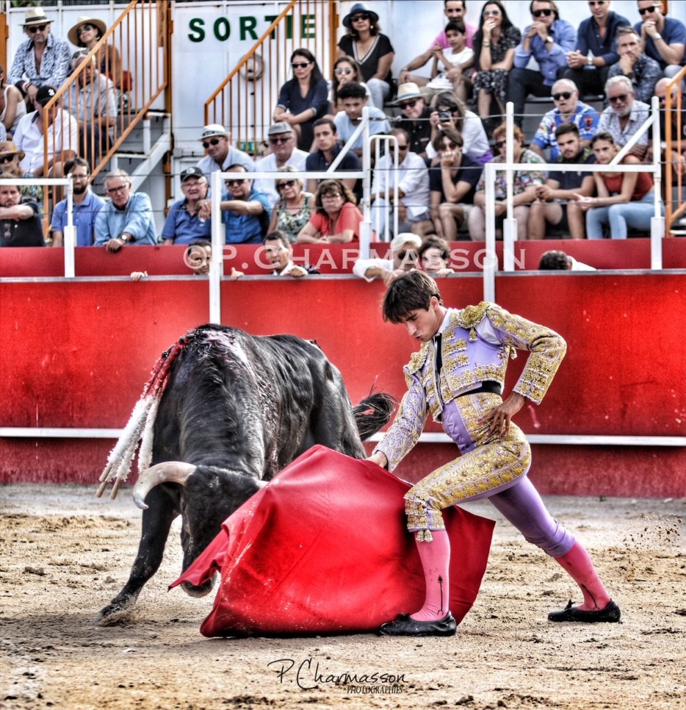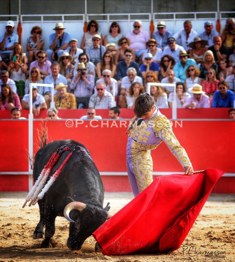 Christian Parejo l’a accompagné « por volandas » après avoir ravi les deux oreilles du bon sixième. Le torero de Chiclana, comme à la maison à deux pas de Béziers sa ville d’adoption a été porté par un public particulièrement dans l’attente d’un succès du torero « local ». Le protégé de Thomas Cerqueira qui surfe sur une dynamique positive depuis le début de la présente temporada a offert, face au meilleur lot, deux faenas pleine d’empaque et de bon goût, toréant avec pas mal de justesse et lui aussi d’entrega. Sans un maniement défectueux des instruments face au 3eme, le chiclanero aurait pu aisément alourdir de deux esgourdes le score final.