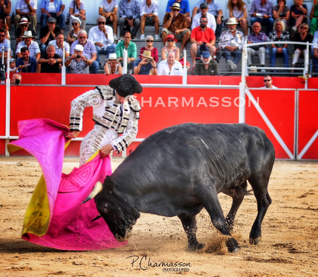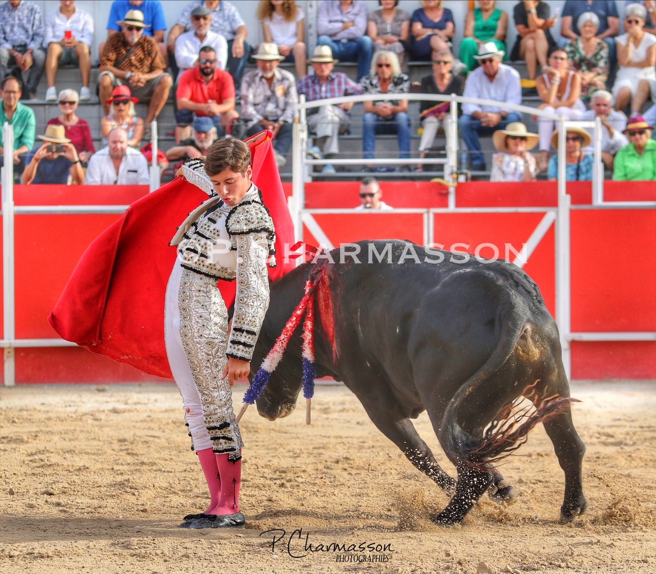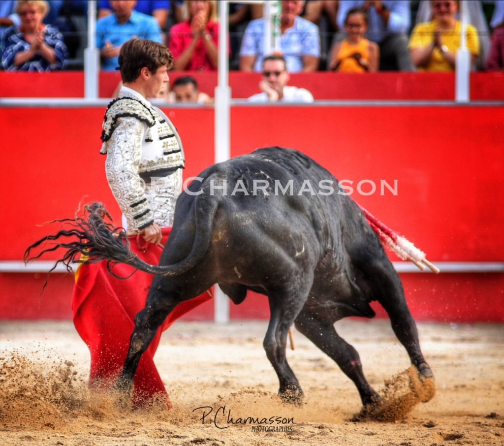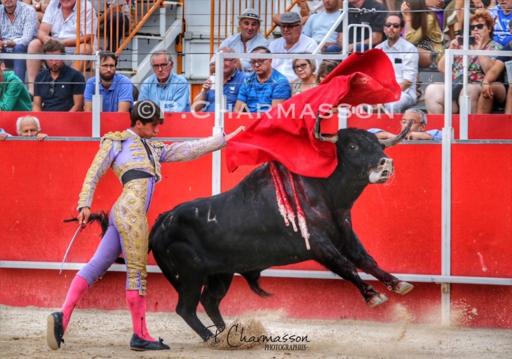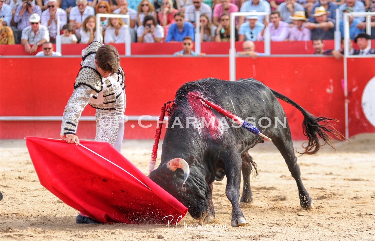 Christian Parejo l’a accompagné « por volandas » après avoir ravi les deux oreilles du bon sixième. Le torero de Chiclana, comme à la maison à deux pas de Béziers sa ville d’adoption a été porté par un public particulièrement dans l’attente d’un succès du torero « local ». Le protégé de Thomas Cerqueira qui surfe sur une dynamique positive depuis le début de la présente temporada a offert, face au meilleur lot, deux faenas pleine d’empaque et de bon goût, toréant avec pas mal de justesse et lui aussi d’entrega. Sans un maniement défectueux des instruments face au 3eme, le chiclanero aurait pu aisément alourdir de deux esgourdes le score final.