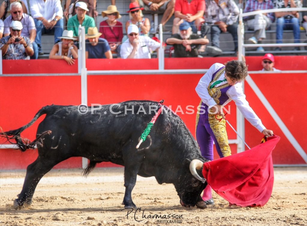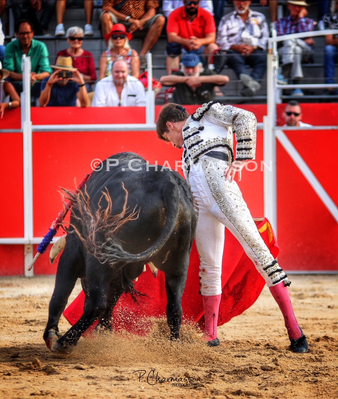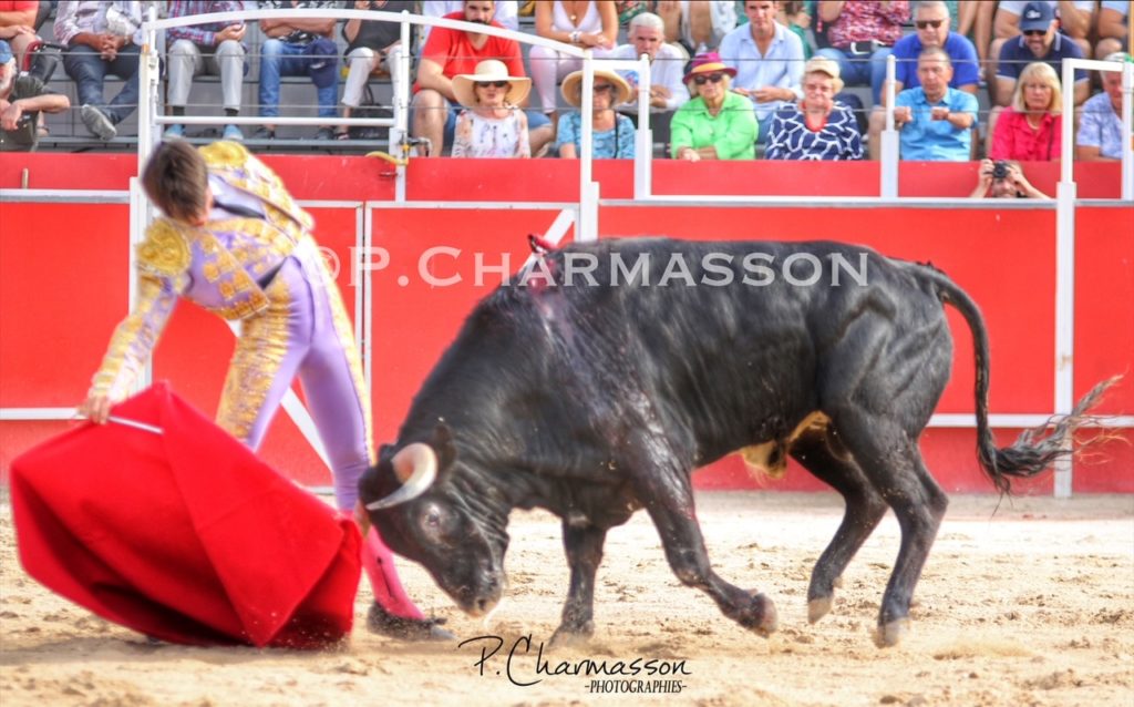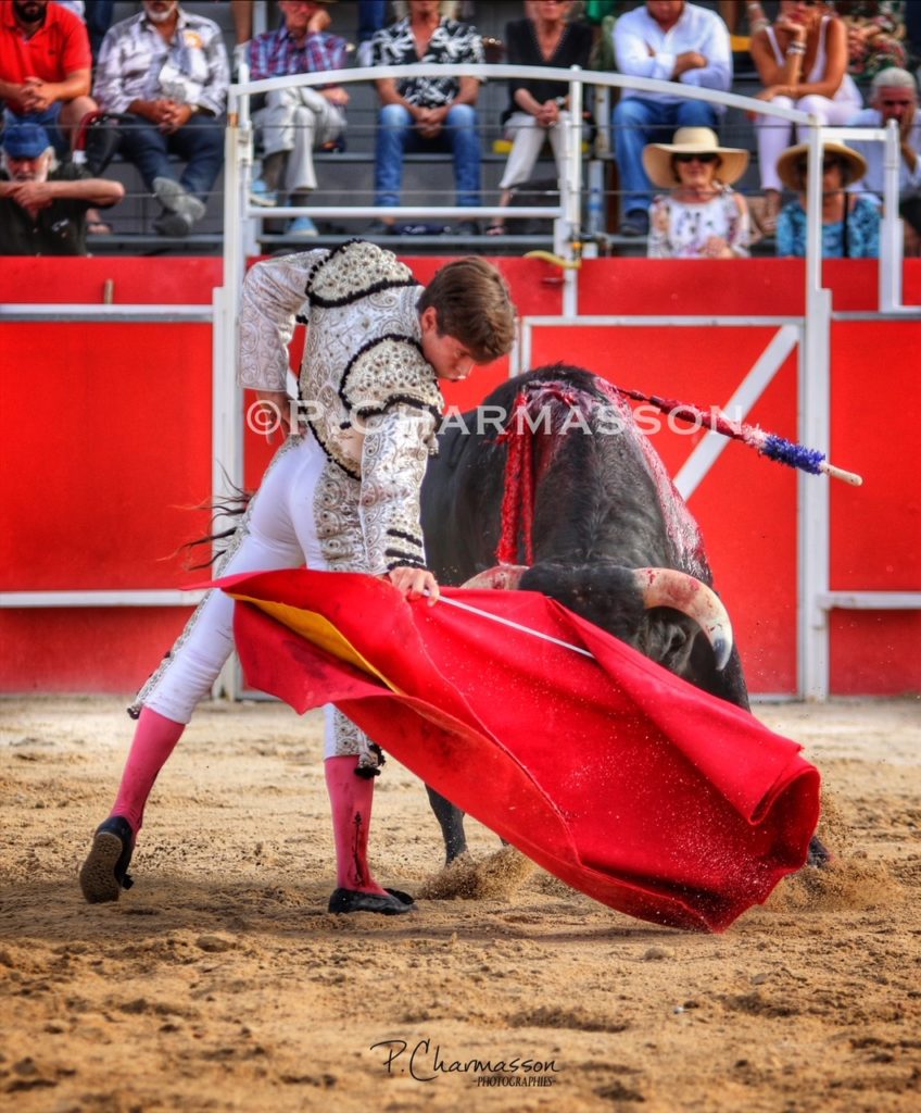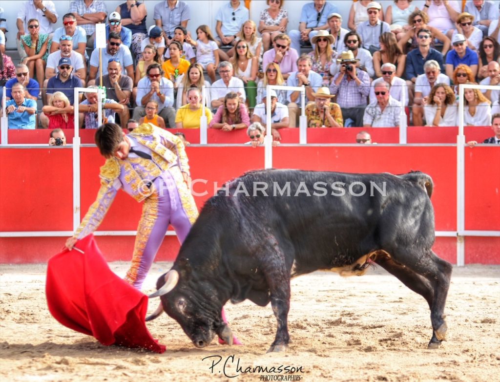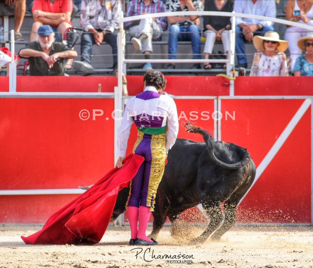 Christian Parejo l’a accompagné « por volandas » après avoir ravi les deux oreilles du bon sixième. Le torero de Chiclana, comme à la maison à deux pas de Béziers sa ville d’adoption a été porté par un public particulièrement dans l’attente d’un succès du torero « local ». Le protégé de Thomas Cerqueira qui surfe sur une dynamique positive depuis le début de la présente temporada a offert, face au meilleur lot, deux faenas pleine d’empaque et de bon goût, toréant avec pas mal de justesse et lui aussi d’entrega. Sans un maniement défectueux des instruments face au 3eme, le chiclanero aurait pu aisément alourdir de deux esgourdes le score final.