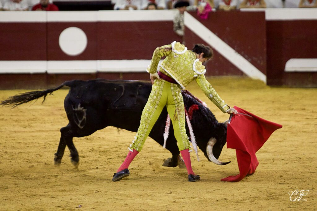 Une autre oreille est tombée, cette fois dans l’escarcelle du français Tristan Barroso, qui se présentait à Dax devant un toro compliqué, parfois violent, qui demanda au benjamin de l’affiche un véritable effort pour ficeler une faena de bonne facture sur les deux mains. Entière létale au second voyage.