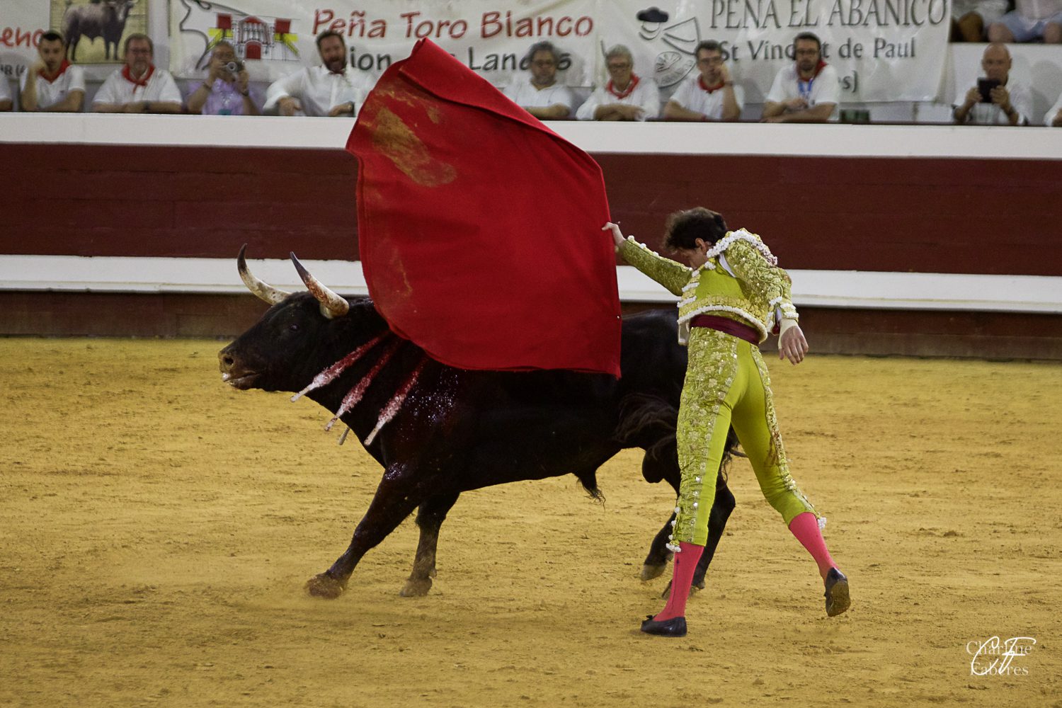 Une autre oreille est tombée, cette fois dans l’escarcelle du français Tristan Barroso, qui se présentait à Dax devant un toro compliqué, parfois violent, qui demanda au benjamin de l’affiche un véritable effort pour ficeler une faena de bonne facture sur les deux mains. Entière létale au second voyage.