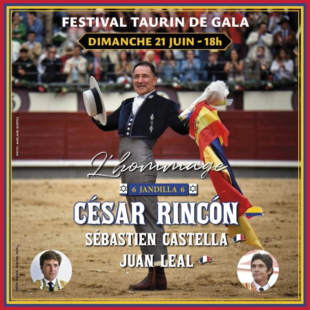 a 18h : Festival hommage au maestro Cesar Rincon. Toros de Jandilla pour Cesar Rincon, Sebastien Castella et Juan Leal