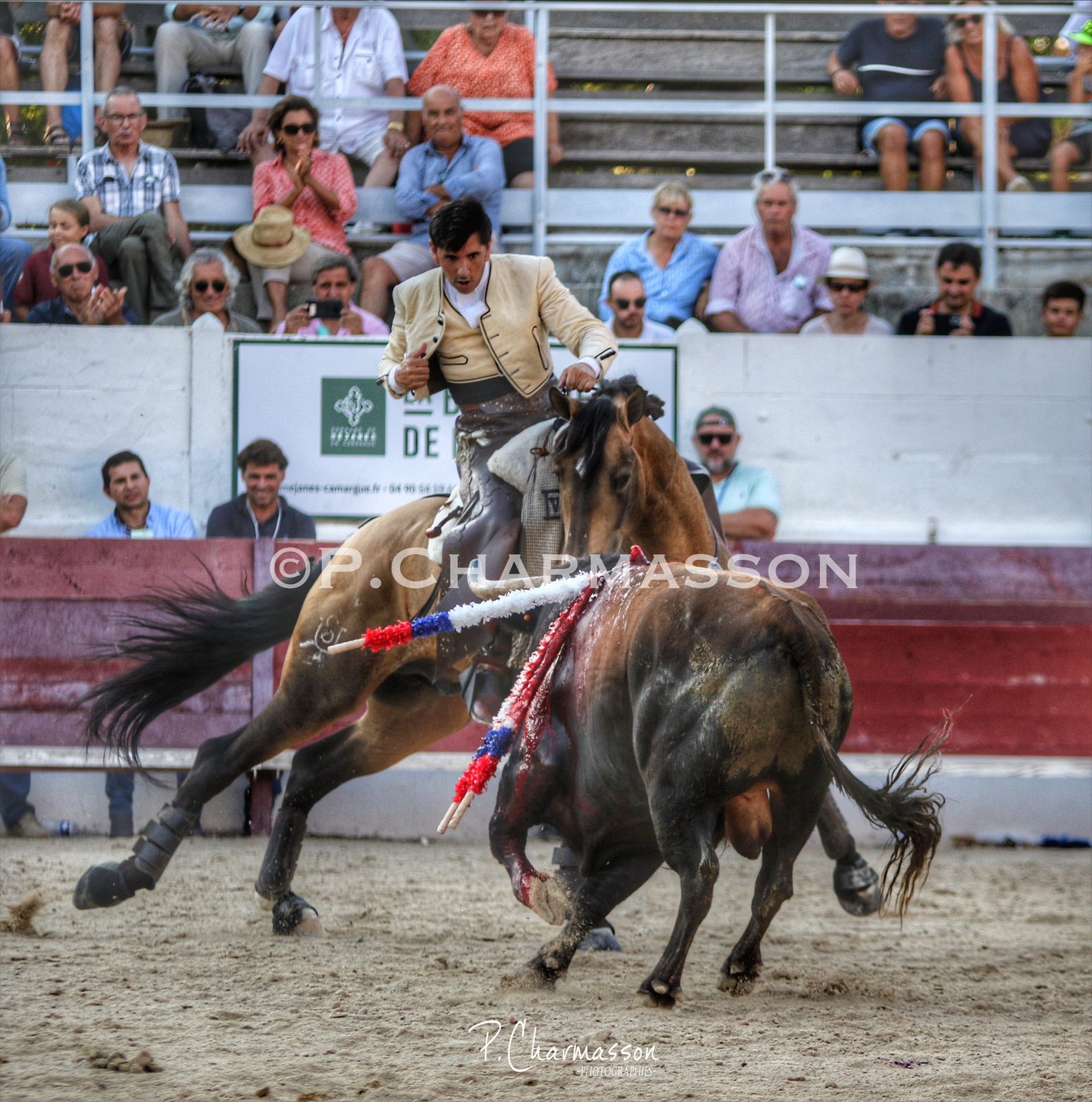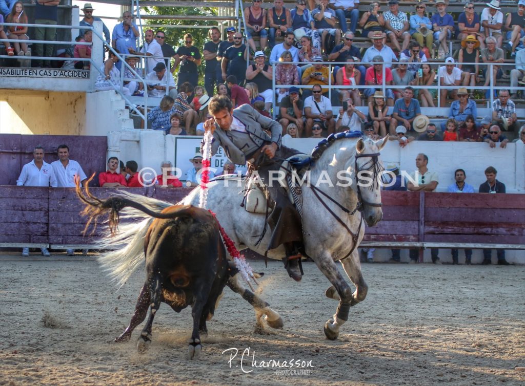 Arènes de Mejanes, Arles. 50eme Rejon d’or. Quasi plein. Grand soleil, chaleur caniculaire. 6 toros de Jalabert Frères.