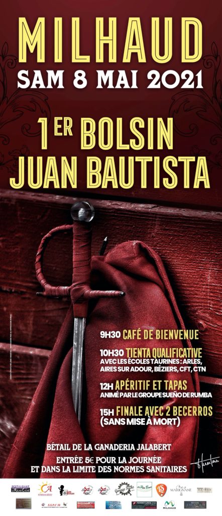 Sous réserve des conditions sanitaires malheureusement en vigueur aujourd’hui et probablement pour les mois qui suivent, le Club Taurin Toros y Fiesta de Milhaud organise le 8 mai 2021 le premier Bolsin Juan Bautista dont voici le programme et l’affiche.
