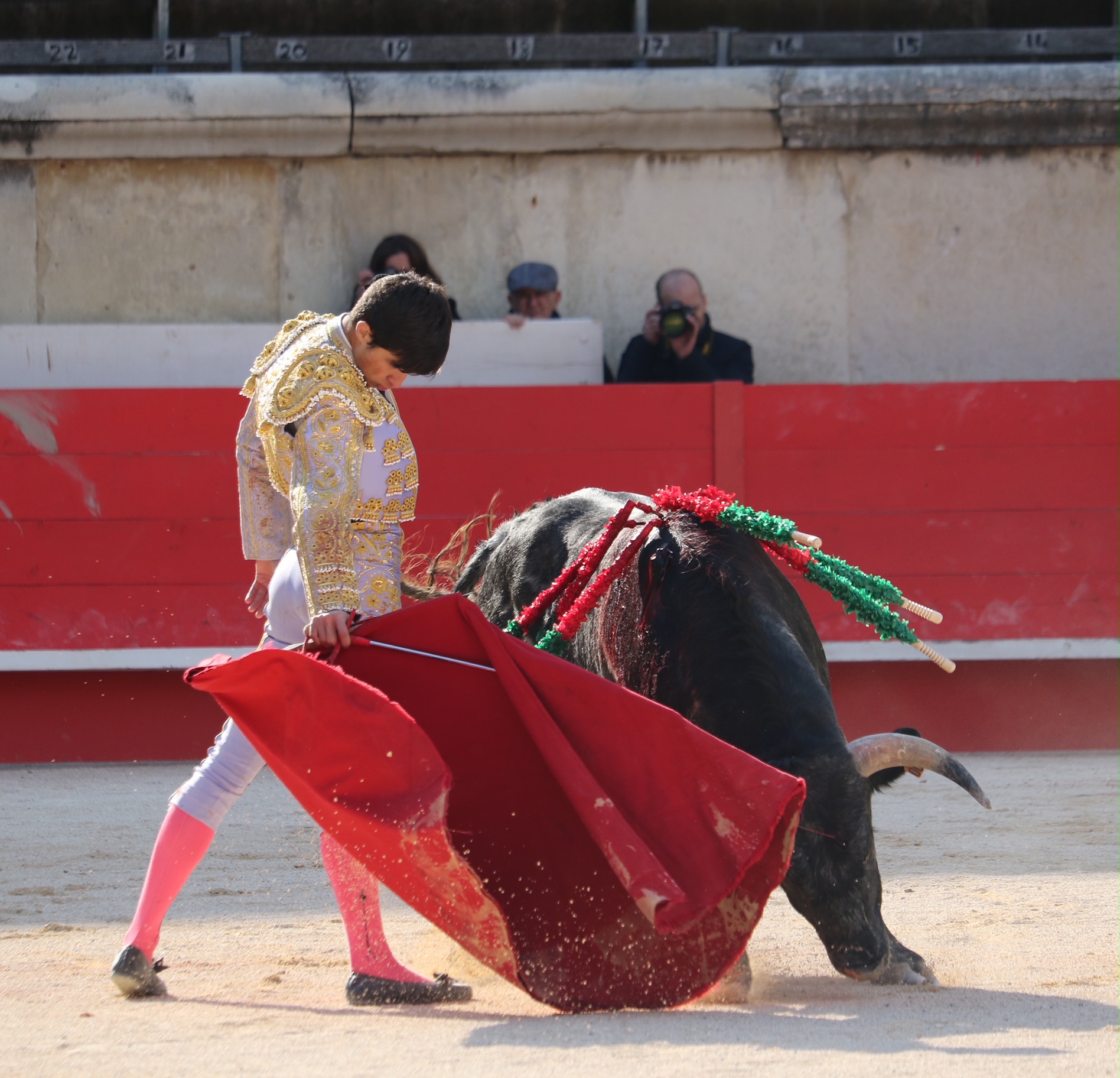 Chez les piétons, difficile de designer un vainqueur aux points. Tous mirent du cœur à l’ouvrage avec des fortunes diverses, toutefois et globalement sans grand brio ni succès. Nino Julian fut le seul à recueillir l’honneur d’une vuelta al ruedo chaleureusement fêtée devant les siens, même si, selon moi, une simple ovation aurait été plus justement de circonstance. Une après-midi dont le triste dénominateur commun fut le maniement médiocre des instruments létaux, tant à l’épée qu’avec les descabellos. Autant dire qu’il reste du boulot et l’on dira avec clémence que cela est assez logique, Rome ne s’étant tout de même pas faite en un jour…