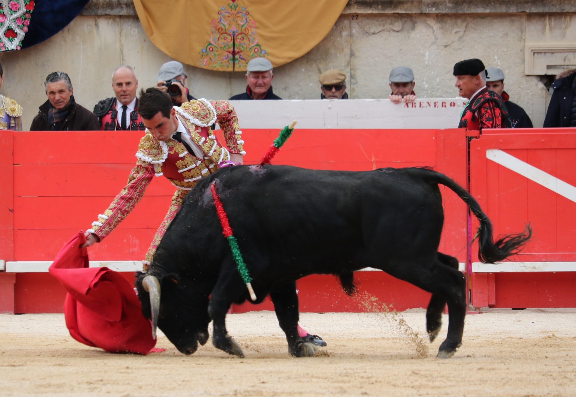 Le béarnais Jean Larroquette « Juanito » se présentait à Nîmes devant un eral de Barcelo correctement salué à la cape. Bon quite de Nino Julian avant faena brindée au public. Un trasteo sérieux par le protégé de Richard Milian face à l’animal le moins commode de la devise du Mas de Sire. Labeur majoritairement droitier qui peina à prendre corps avec continuité. Final par molinetes avant une lame plate au deuxième voyage occasionnant une voltereta sans gravité, puis l’usage du verdugillo.