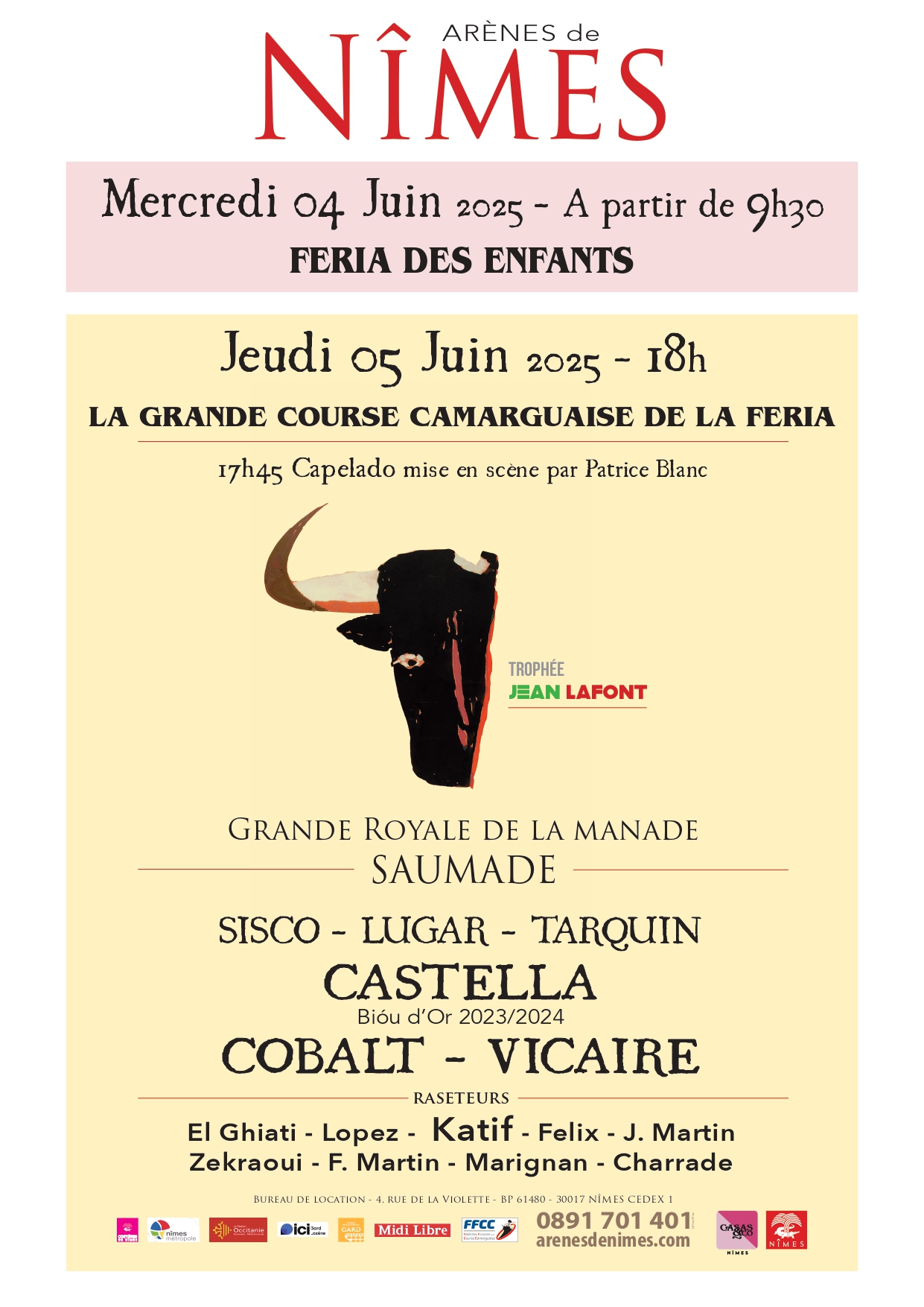 Un cycle qui se déroulera du 4 au 9 juin prochain et dont le coup d’envoi sera donné par la traditionnelle Feria des Enfants, mercredi 4 avant que les cocardiers de la Manade Saumade ne foulent le sable nîmois le lendemain pour une Grande Royale avec notamment la présence du double Biou d’or 2023 et 2024, Castella.