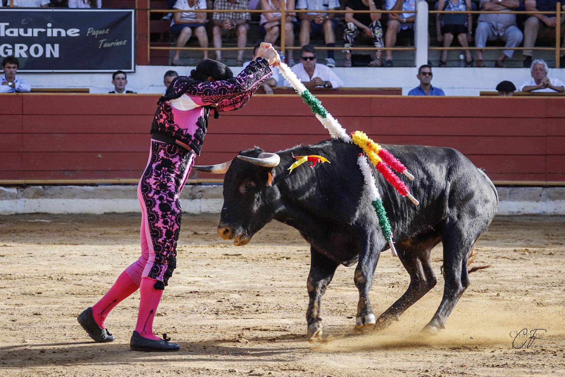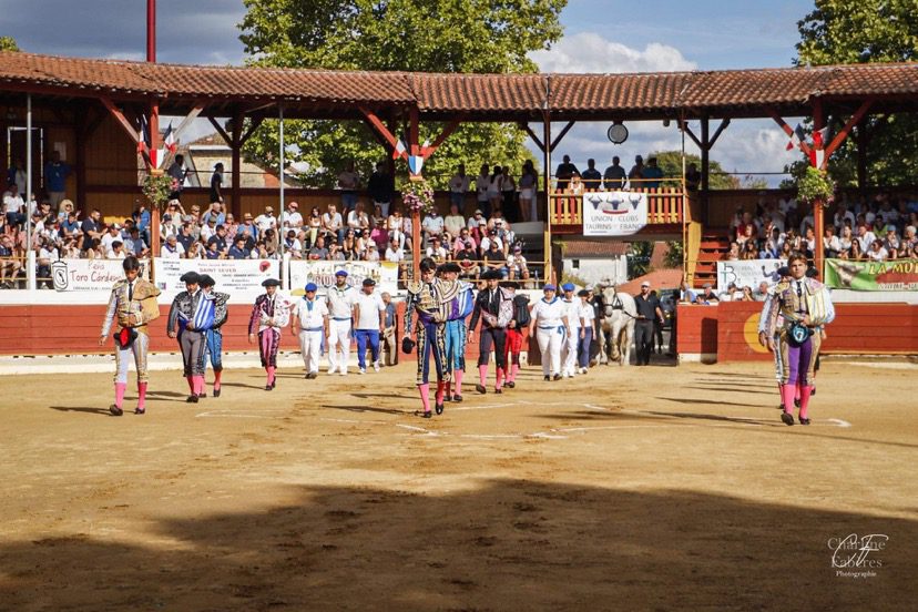 Pour le retour des novilladas et des fêtes de Rion de Landes, les aficionados ont répondu présents et ont copieusement garni les gradins des arènes sous un temps ensoleillé. En matinée, Clément Hargous coupa une oreille face à un eral d’Alma Serena. L’après-midi, ce fut la traditionnelle novillada avec les Atananios et Lisardo Sanchez de la ganaderia de Valdefresno. L’intérêt de proposer un encaste différent de l’ordinaire, permet de mesurer l’évolution des jeunes apprentis toreros, où la répétition des gammes ne suffit pas pour triompher. La notion de lidia et la faculté à s’adapter au comportement du novillo prennent un sens particulier. A ce titre, c’est Tristan Barroso qui se distingua le plus durant cette tarde. Salut de Mathieu Guillon aux banderilles au troisième. Présidence : Lionel Lohiague. 9/10 d’arène.