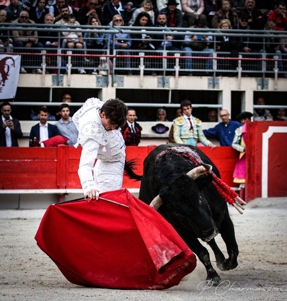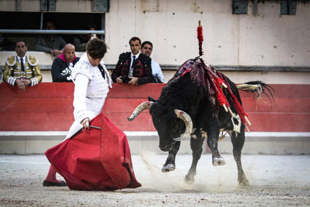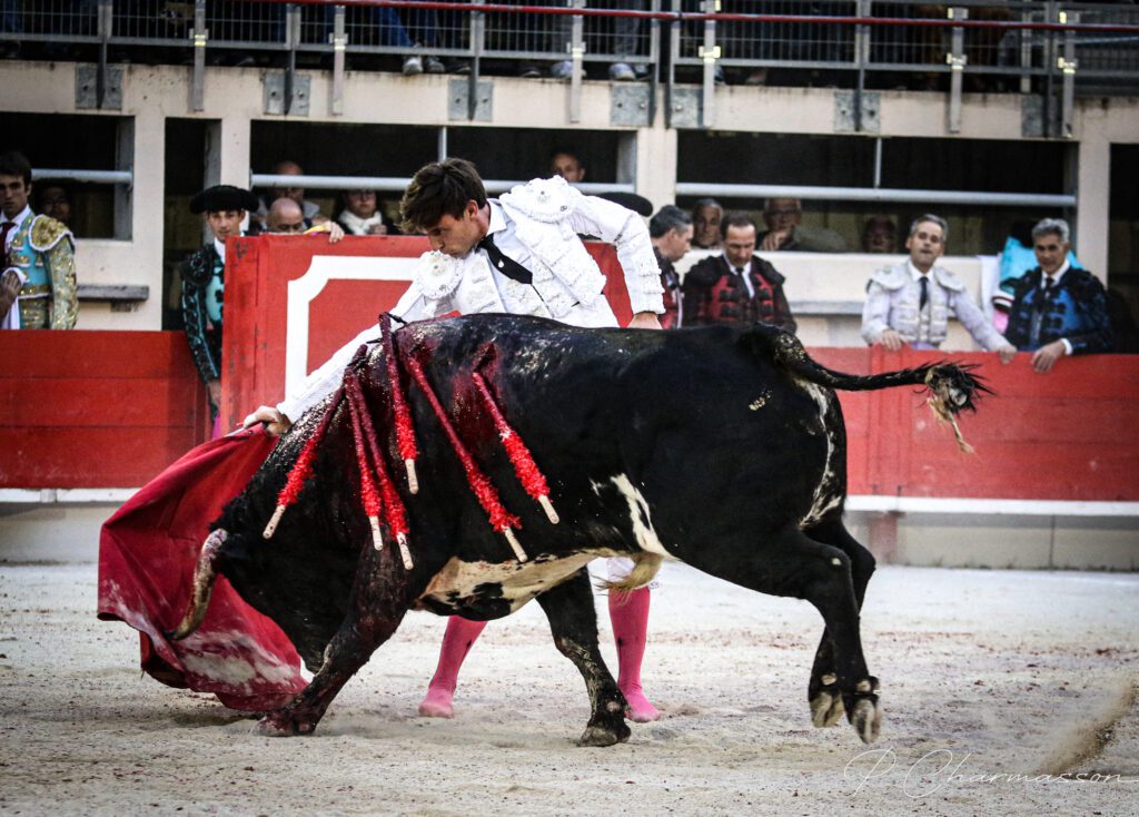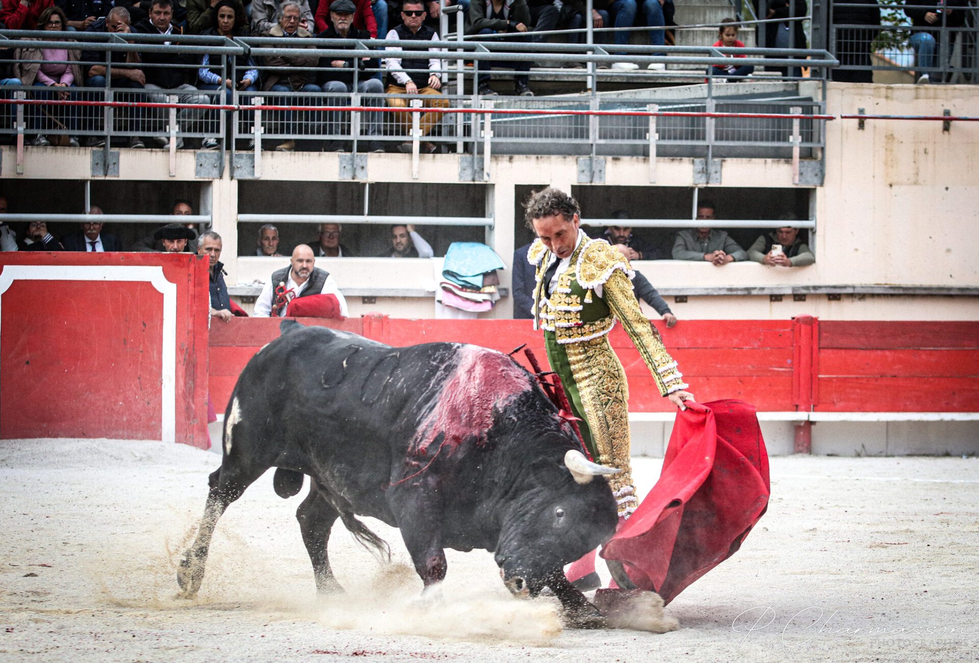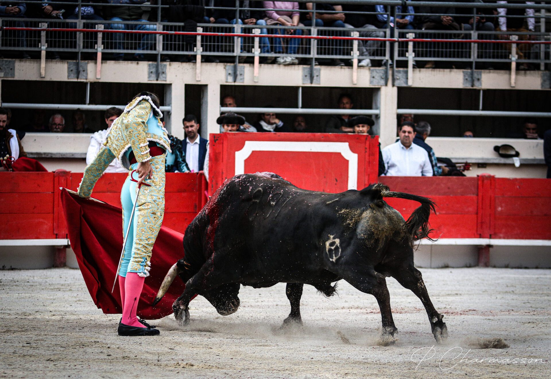 Tibo Garcia vit d’abord déboulé des chiqueros “Piémanson”, une montagne du muscle du fer de Christophe Yonnet salué par deux bonnes véroniques avant un tiers de piques… épique. Quatre doses. Ou dosettes puisque, si l’astado rentra fort dans le matelas, ce dernier s’y employa peu et fut donc bien capté mais très peu piqué. Un toro au haut port de tête qui arriva arrêté dans la muleta du nîmois qui tenta de se justifier, en vain. Echec à l’épée avant grand coup de descabello.