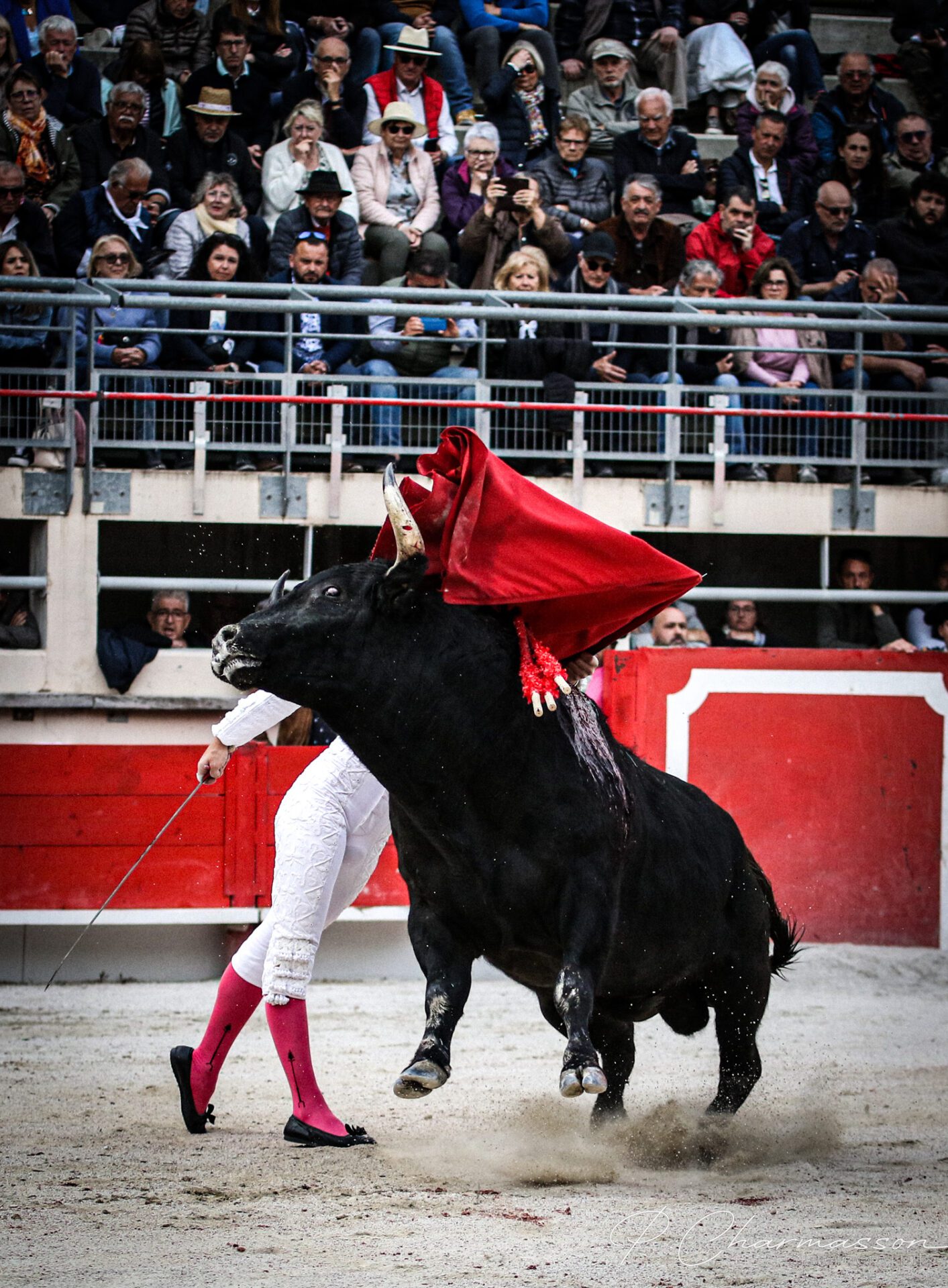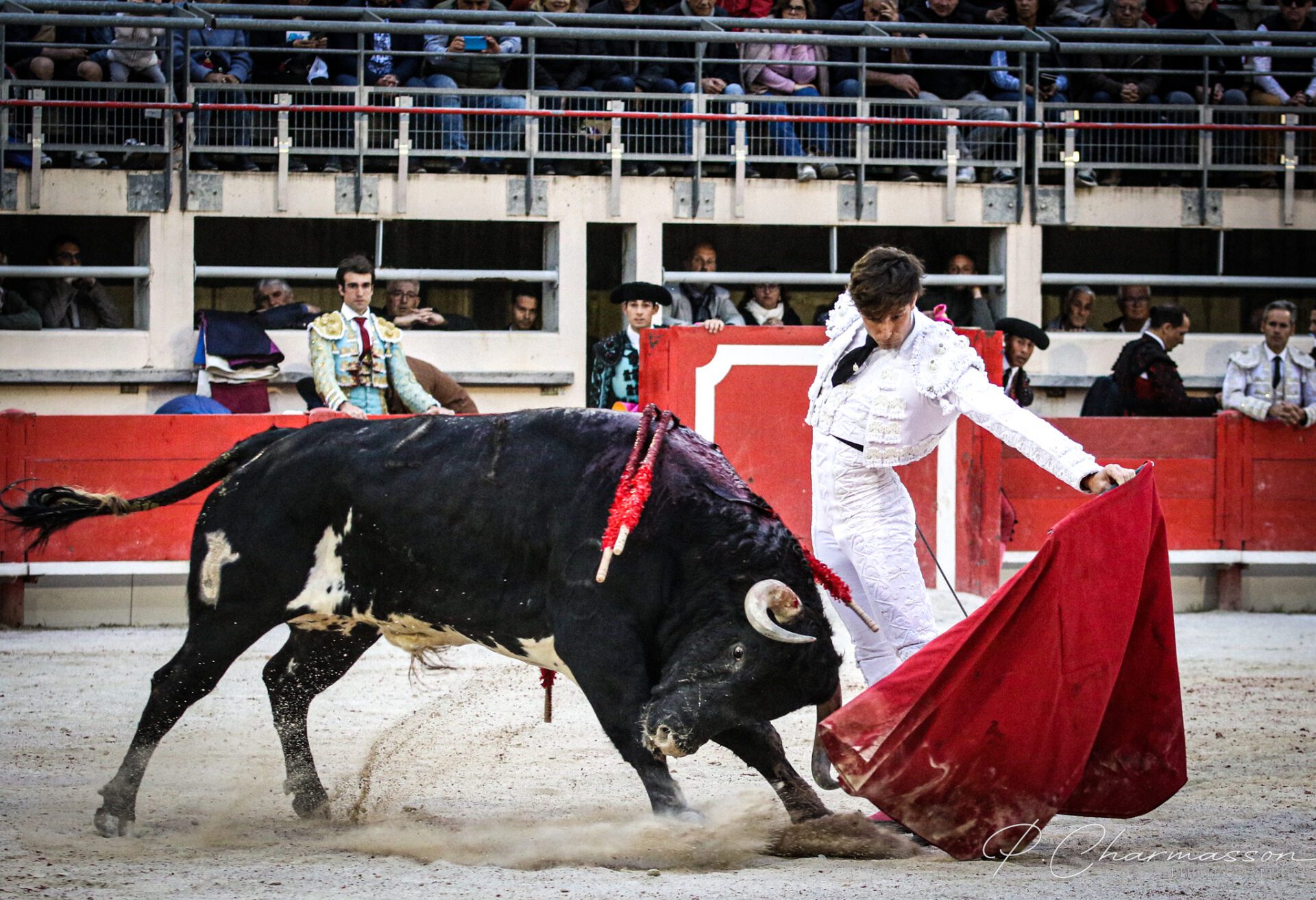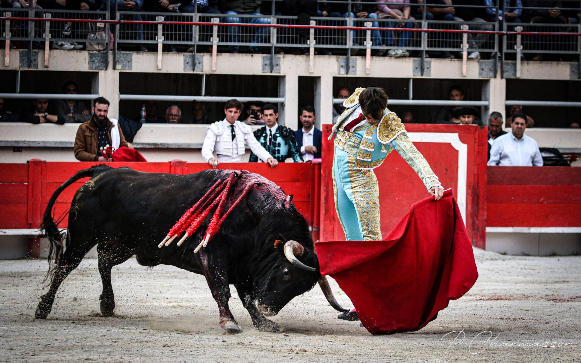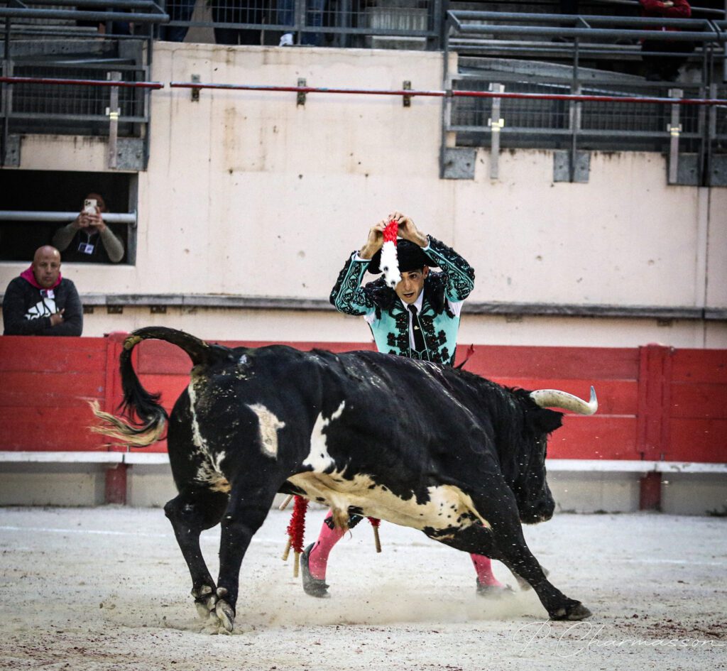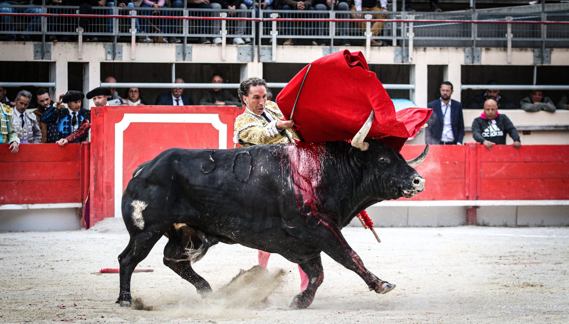 Tibo Garcia vit d’abord déboulé des chiqueros “Piémanson”, une montagne du muscle du fer de Christophe Yonnet salué par deux bonnes véroniques avant un tiers de piques… épique. Quatre doses. Ou dosettes puisque, si l’astado rentra fort dans le matelas, ce dernier s’y employa peu et fut donc bien capté mais très peu piqué. Un toro au haut port de tête qui arriva arrêté dans la muleta du nîmois qui tenta de se justifier, en vain. Echec à l’épée avant grand coup de descabello.