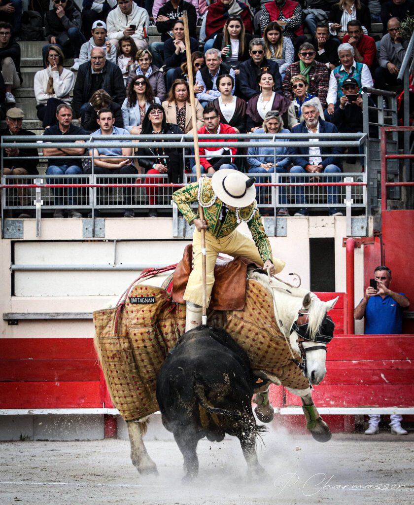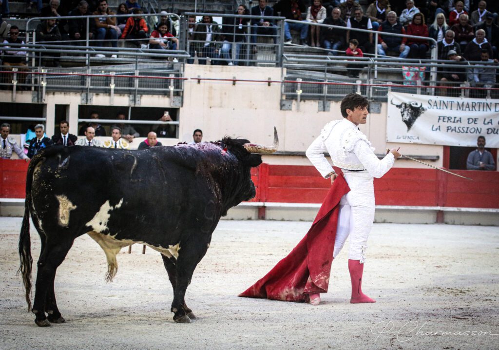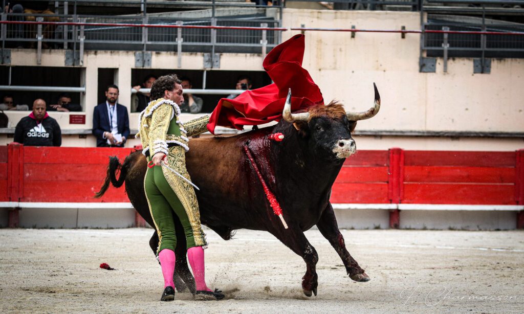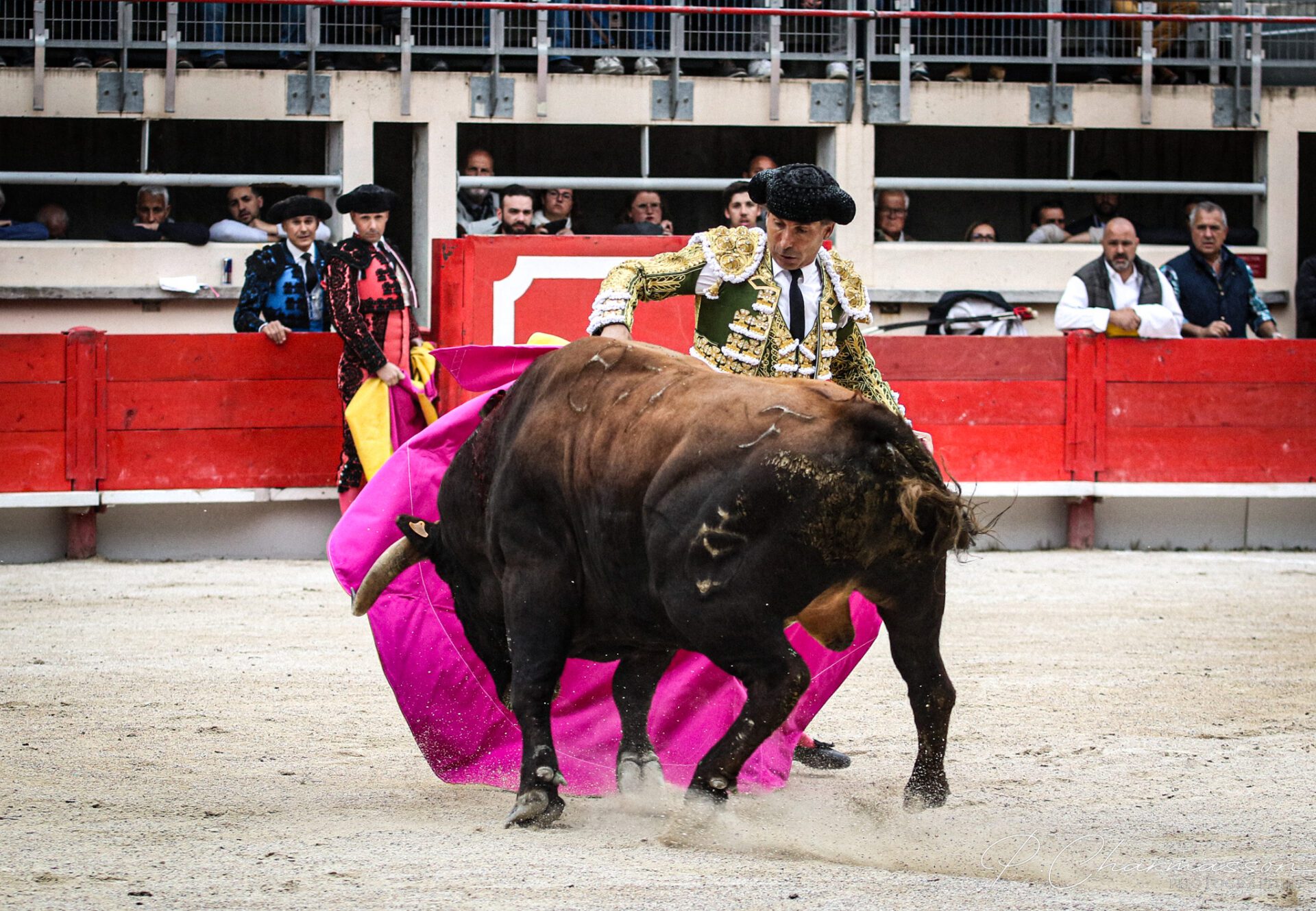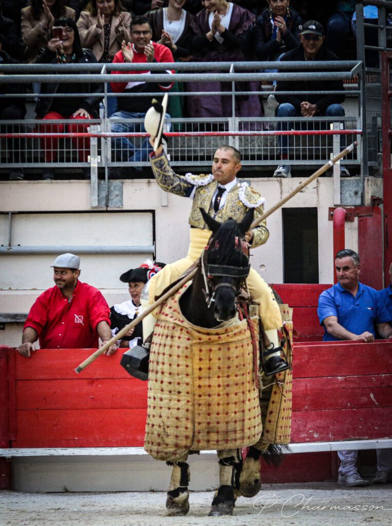 Tibo Garcia vit d’abord déboulé des chiqueros “Piémanson”, une montagne du muscle du fer de Christophe Yonnet salué par deux bonnes véroniques avant un tiers de piques… épique. Quatre doses. Ou dosettes puisque, si l’astado rentra fort dans le matelas, ce dernier s’y employa peu et fut donc bien capté mais très peu piqué. Un toro au haut port de tête qui arriva arrêté dans la muleta du nîmois qui tenta de se justifier, en vain. Echec à l’épée avant grand coup de descabello.