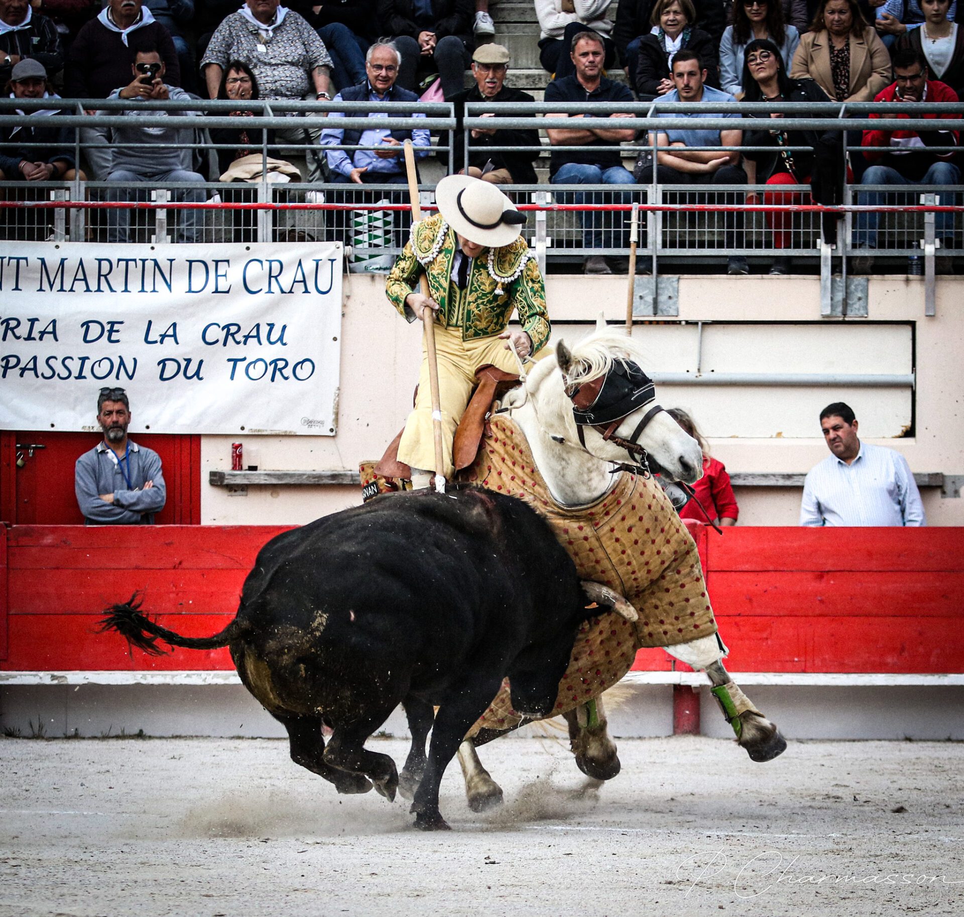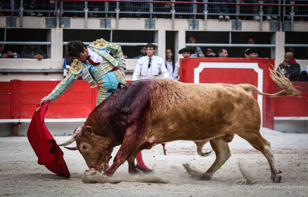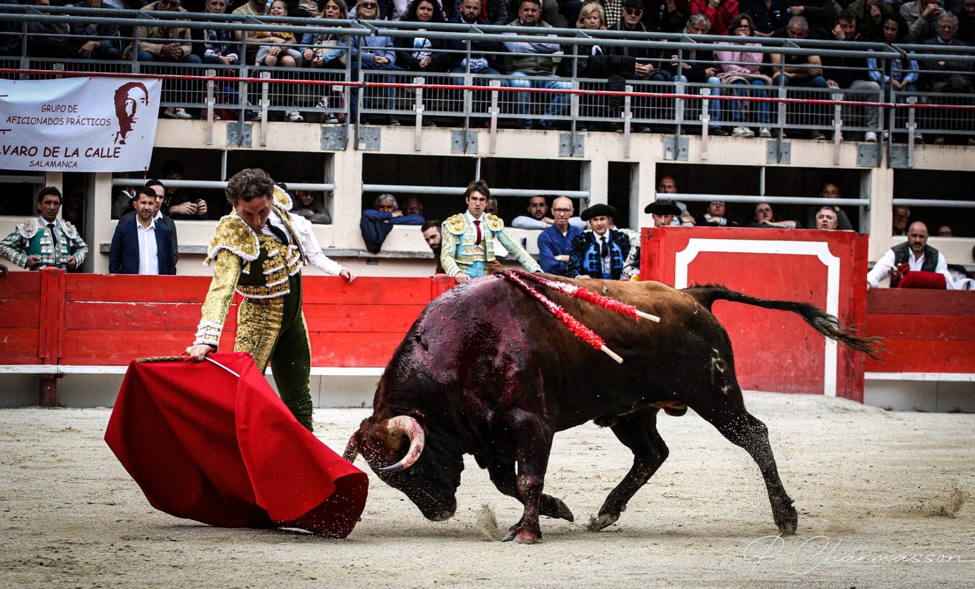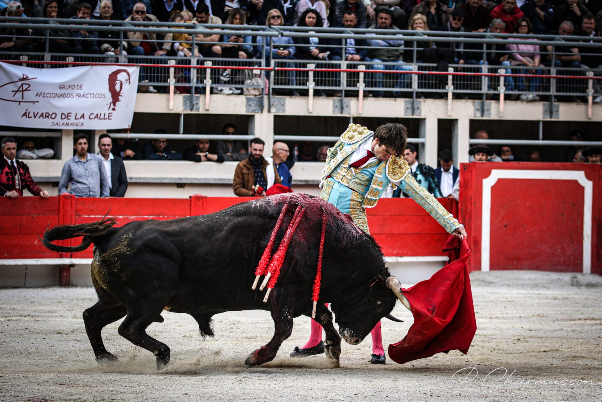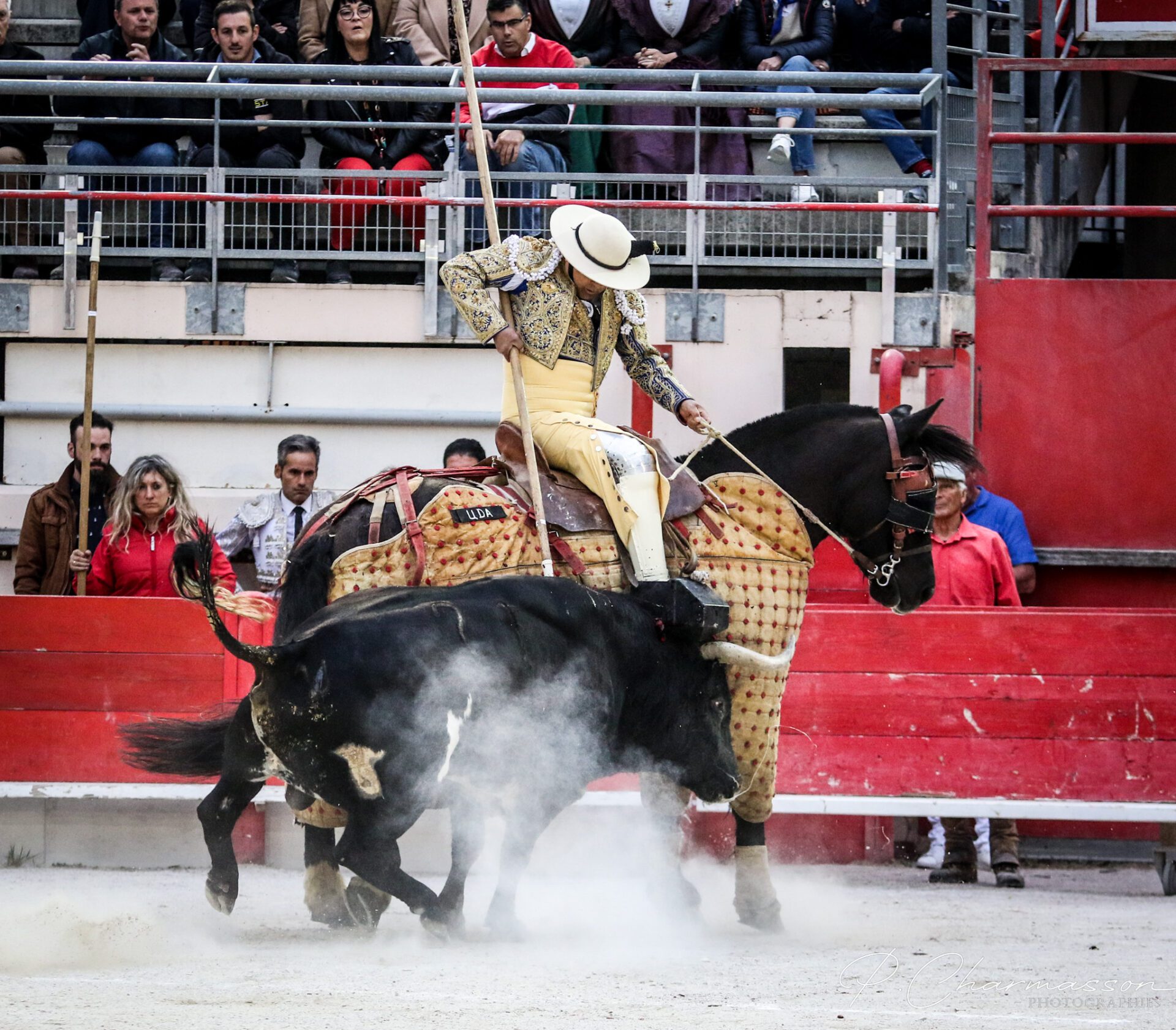 Tibo Garcia vit d’abord déboulé des chiqueros “Piémanson”, une montagne du muscle du fer de Christophe Yonnet salué par deux bonnes véroniques avant un tiers de piques… épique. Quatre doses. Ou dosettes puisque, si l’astado rentra fort dans le matelas, ce dernier s’y employa peu et fut donc bien capté mais très peu piqué. Un toro au haut port de tête qui arriva arrêté dans la muleta du nîmois qui tenta de se justifier, en vain. Echec à l’épée avant grand coup de descabello.