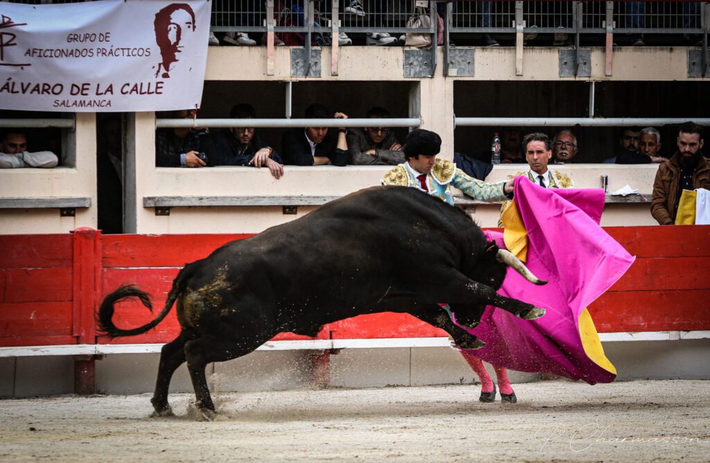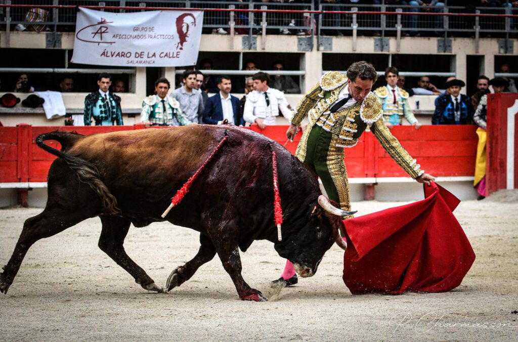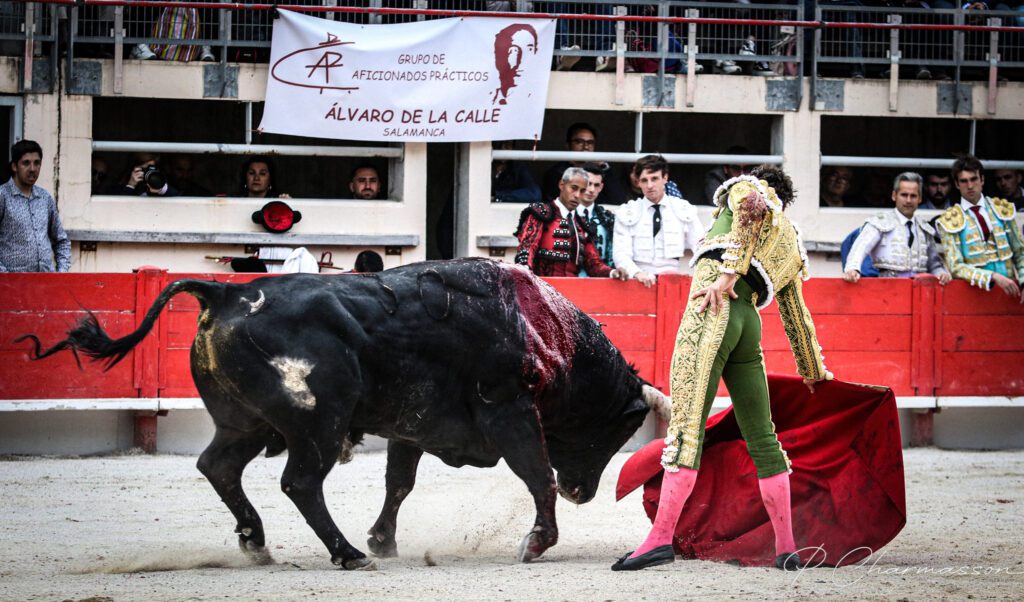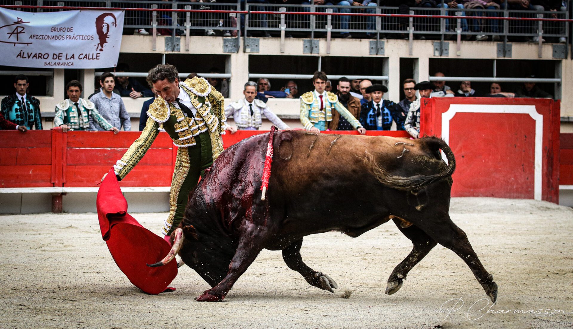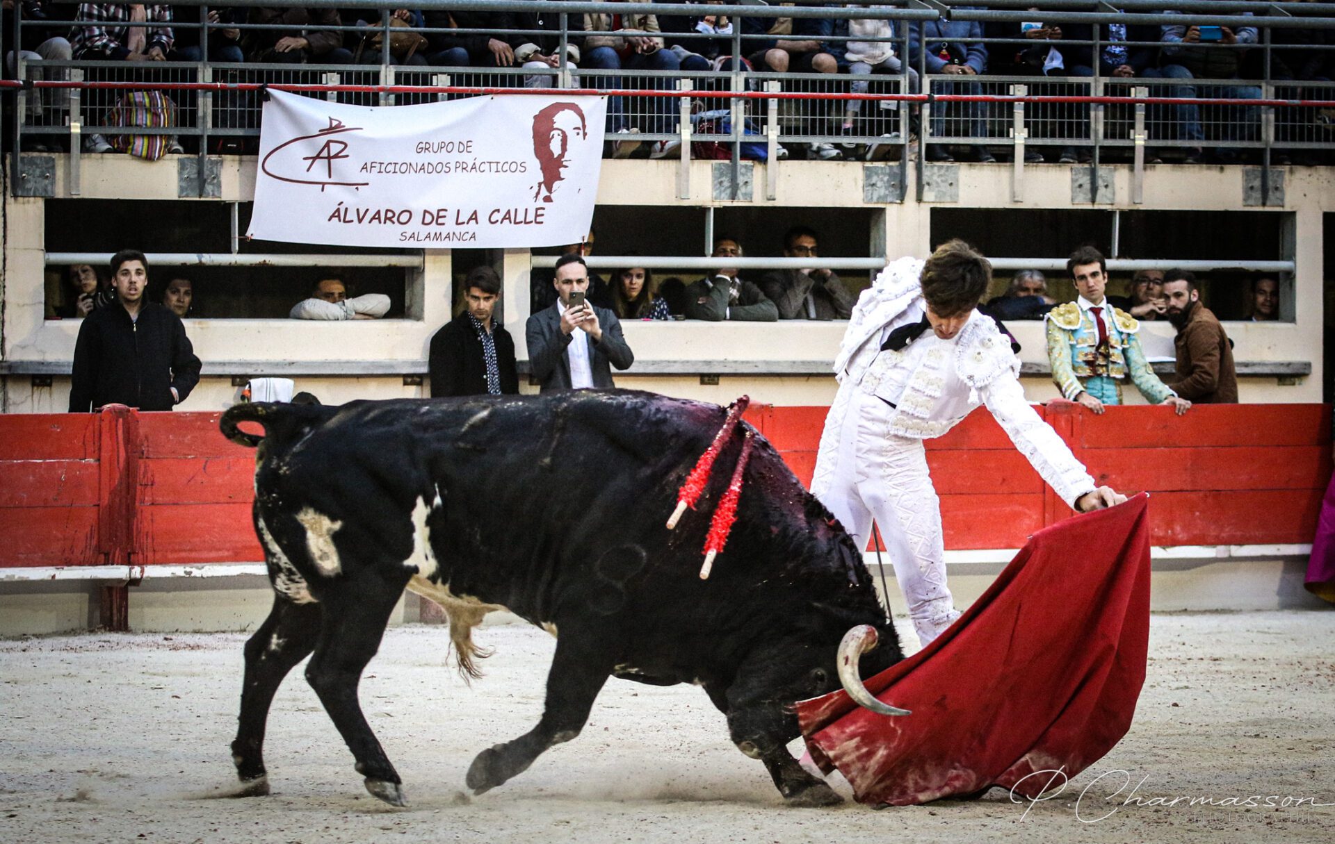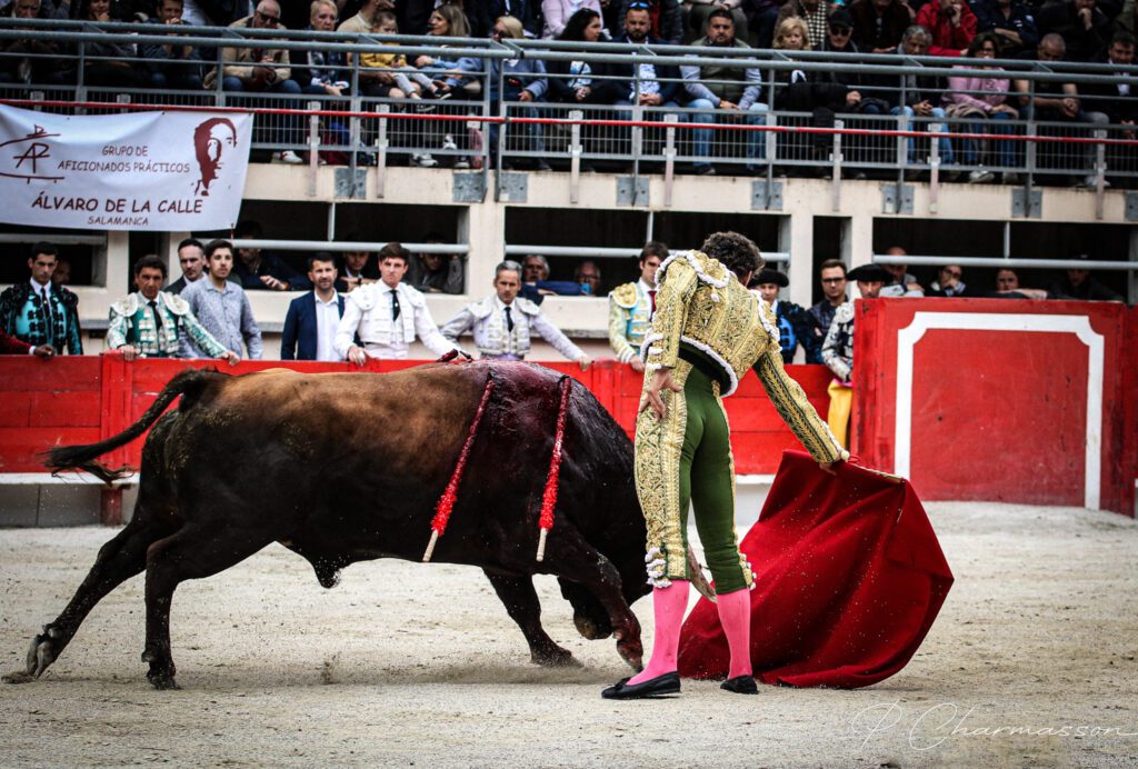 Ovationné à l’issue du paséo, Alvaro de la Calle a soufflé le chaud et le froid tout au long de la tarde. Le salmantin hérita en premières noces de “Discreto”, de loin le meilleur élément de l’après-midi salué d’une larga cambiada de rodillas. Trois piques, y déployant une bonne dose de bravoure sur les deuxième et troisième avant de réserver des charges vibrantes dans le dernier tiers. Trasteo honorable, accompagné par la bande, avec plusieurs séquences de bon son notamment sur la rive droite en soignant le geste dans un ensemble inégal en tout devant un toro bravo, et encasté, terminant un combat qu’il domina la bouché fermée. Maniement des armes médiocre et vuelta complaisante.
