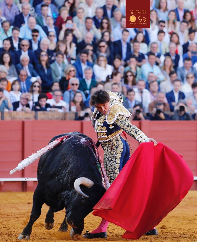 Le diestro de Lima, impressionnant de pouvoir, de dévouement et de décision avait ouvert son compteur devant le troisième avant d’offrir une prestation insolente de maitrise et de vérité. Une domination totale, au devant d’un Cuvillo applaudi à l’arrastre, conjuguant bon toreo, poder et ligazon dans une faena intense qui aura fait vibré le public sévillan qui avait rempli l’enceinte Maestrante à ras bord. Souverain dans l’exécution de la suerte suprême, Roca Rey s’est offert l’une des grandes portes parmi les plus prestigieuses qui lui résistait encore, affirmant encore davantage son statut d’incontestable numéro 1, bien que soit très discutable l’octroi un soupçon généreux des trophées, notamment celui glané devant le premier adversaire du péruvien.